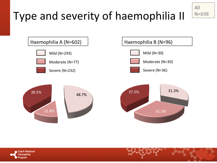 Type and severity of haemophilia in paediatric patients: haemophilia A, haemophilia B |
