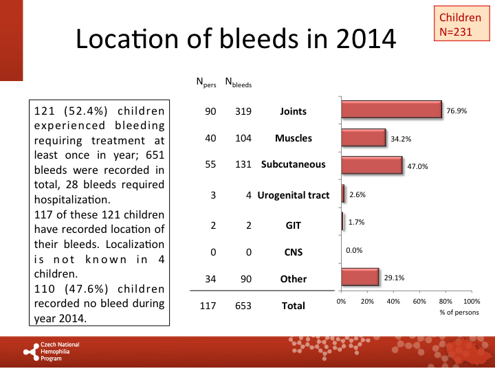 Bleeding frequency in 2014: paediatric patients |