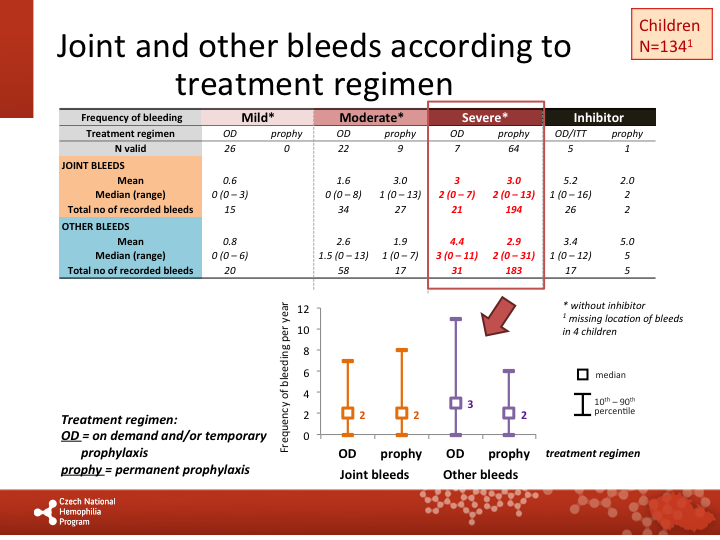Joint and other bleeds according to treatment regimen: paediatric patients |