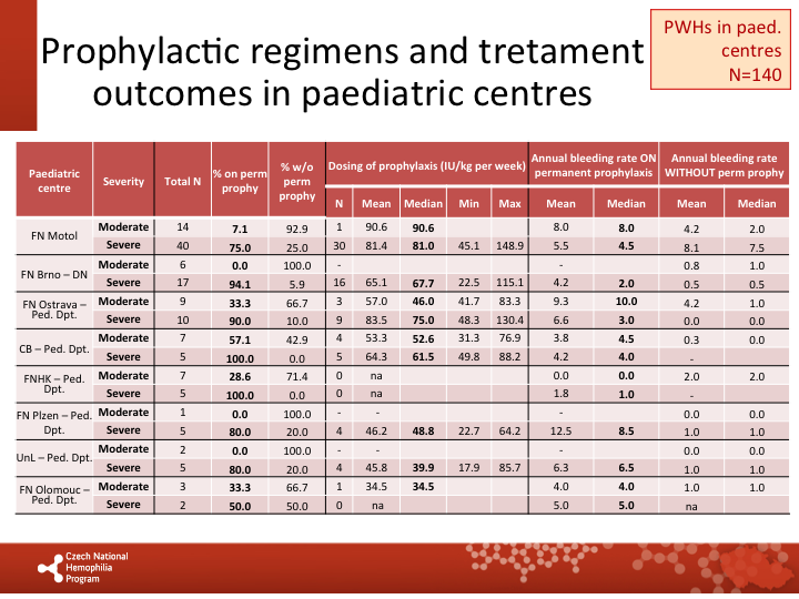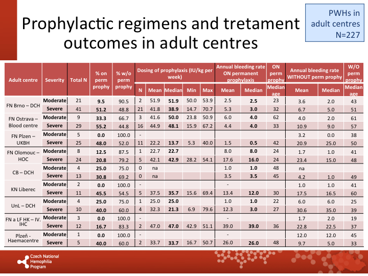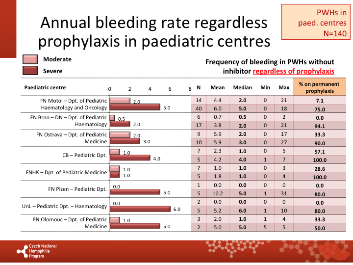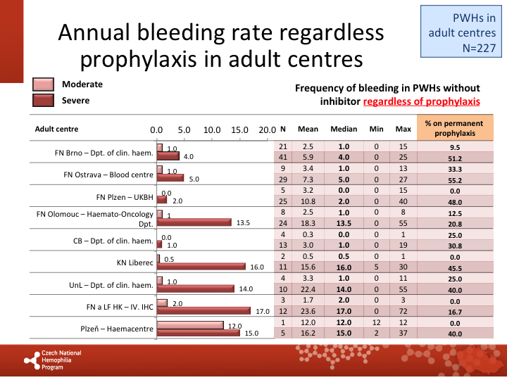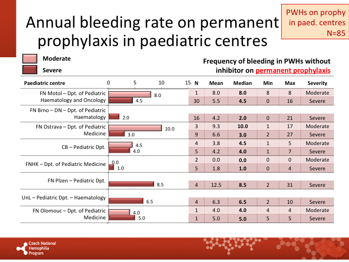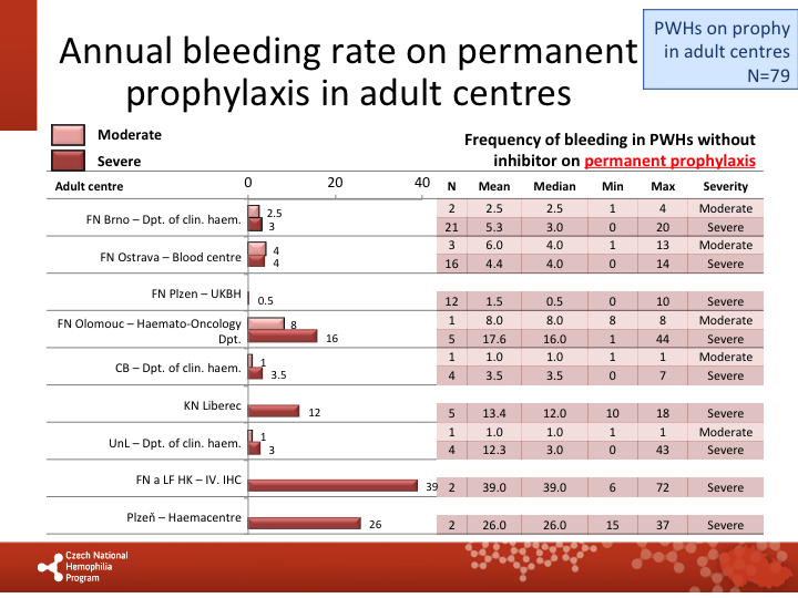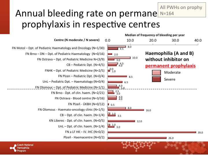 Annual bleeding rate on permanent prophylaxis in respective centres |