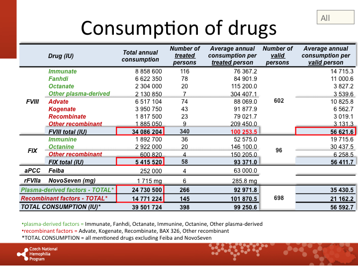 Consumption of factors: all patients |