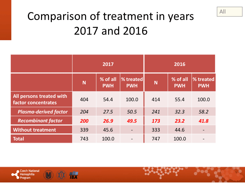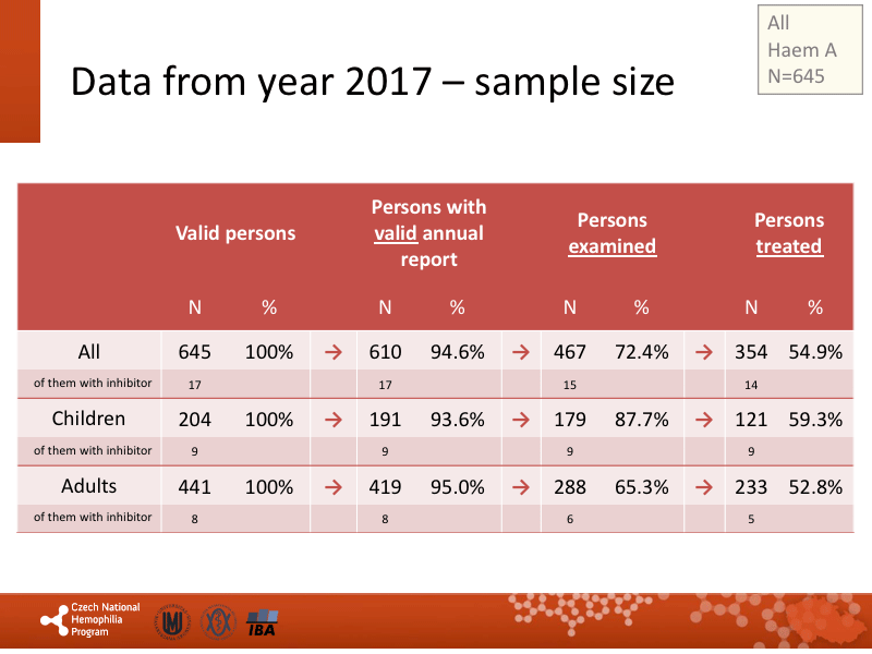 Data from year 2017 – sample size: all patients, haemophilia A |