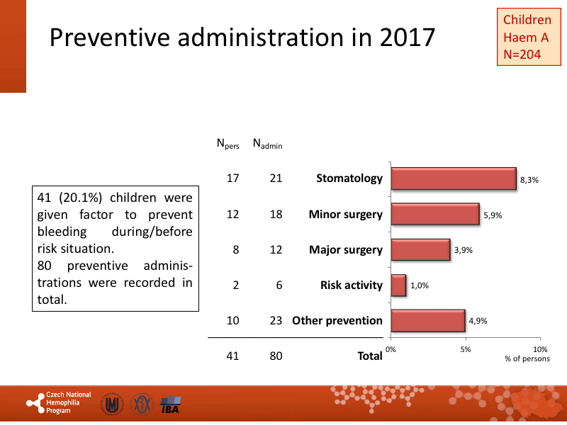 Preventive administration in 2017: paediatric patients, haemophilia A |