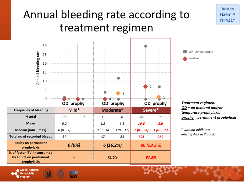 Annual bleeding rate according to treatment regimen: adult patients, haemophilia A |