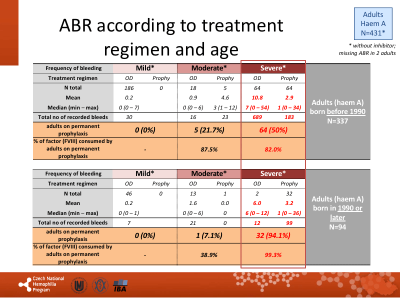 Part A3: ABR according to treatment regimen – haemophilia A without inhibitor |
