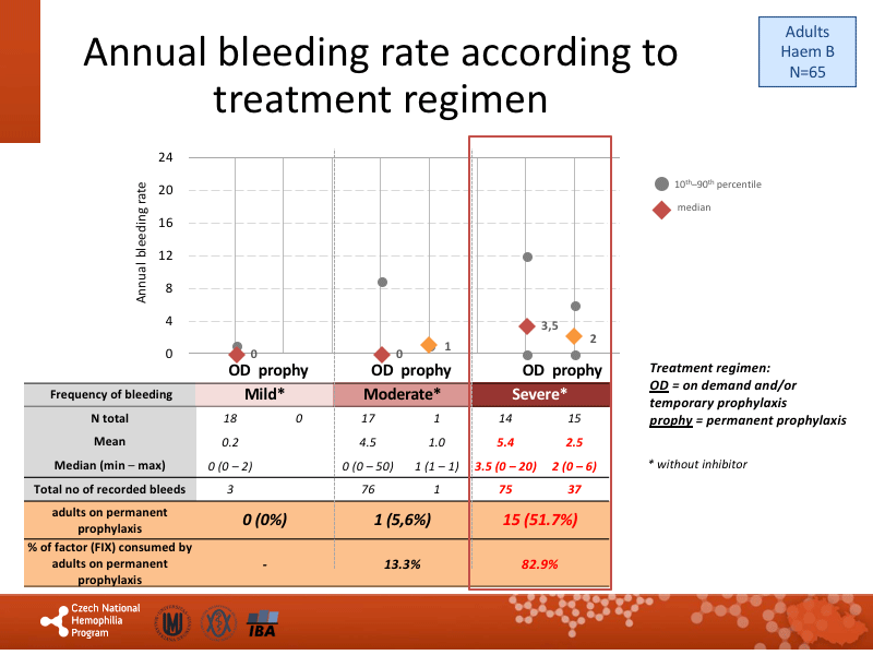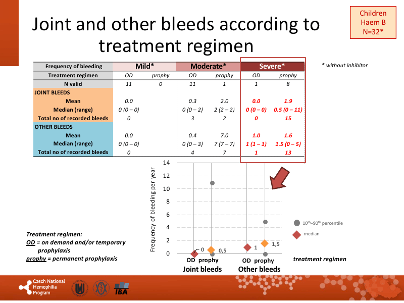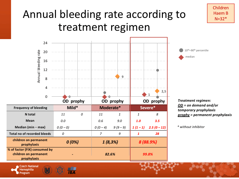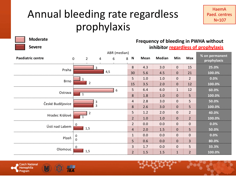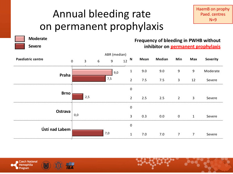 Annual bleeding rate regardless prophylaxis: PWHB, paediatric centres |