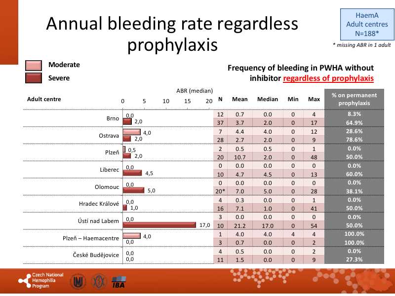 Annual bleeding rate regardless prophylaxis: PWHA, adult centres |