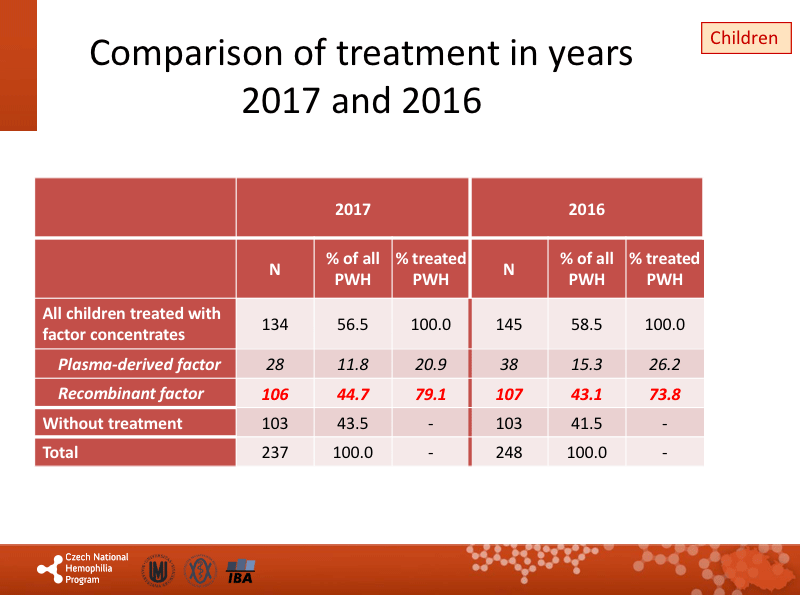 Výstupy z registru ČNHP za rok 2017 – hemofilie |