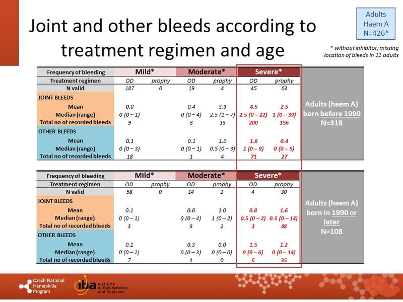 Treatment outcomes and bleeding frequency Haemophilia A |