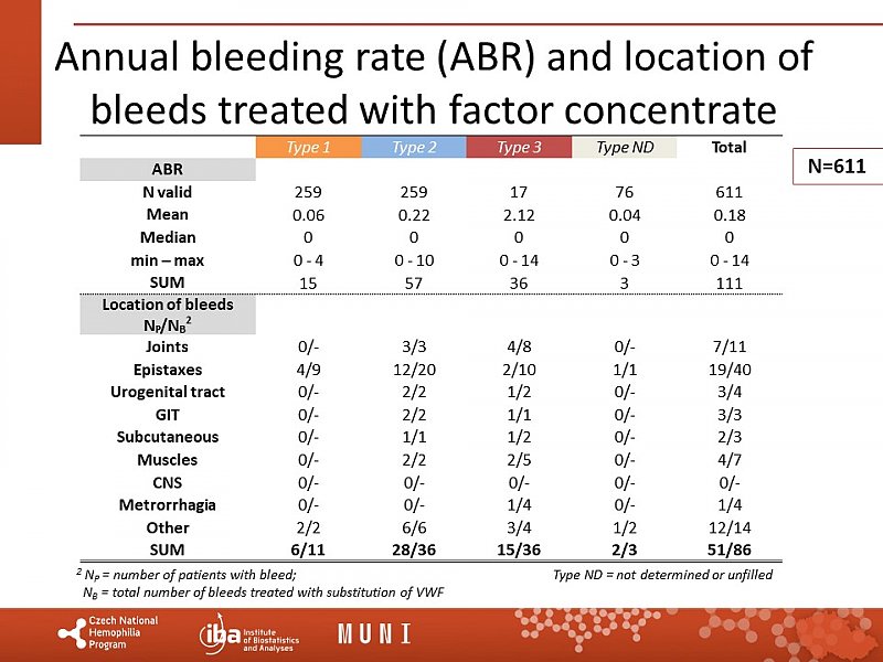 Annual bleeding rate (ABR) and location of bleeds treated with factor concentrate |