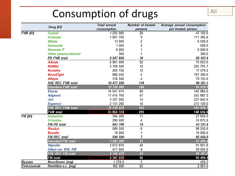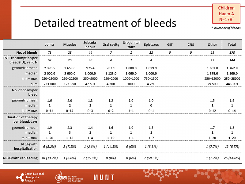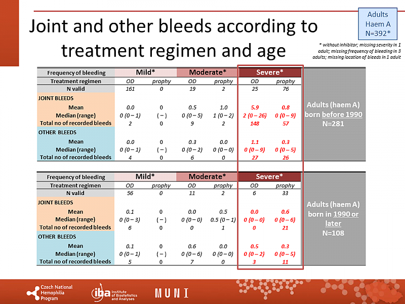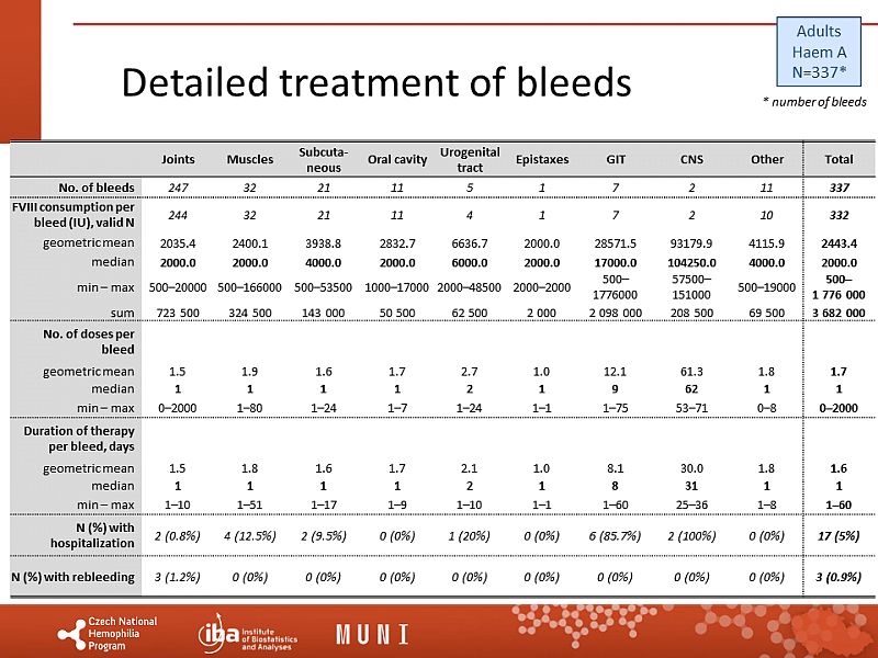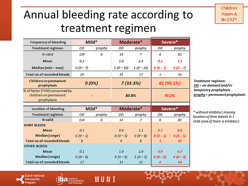 Treatment outcomes and bleeding frequency Haemophilia A |