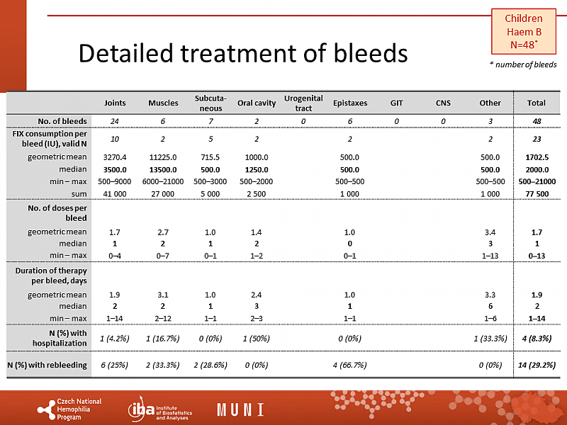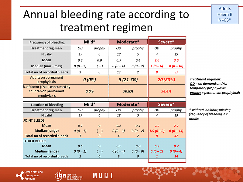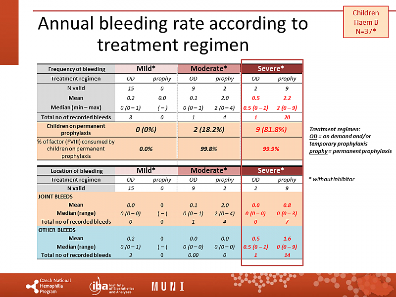 Treatment outcomes and bleeding frequency Haemophilia B |