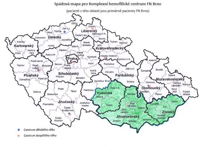 Spádové mapy pro Komplexní hemofilické centrum FN Brno